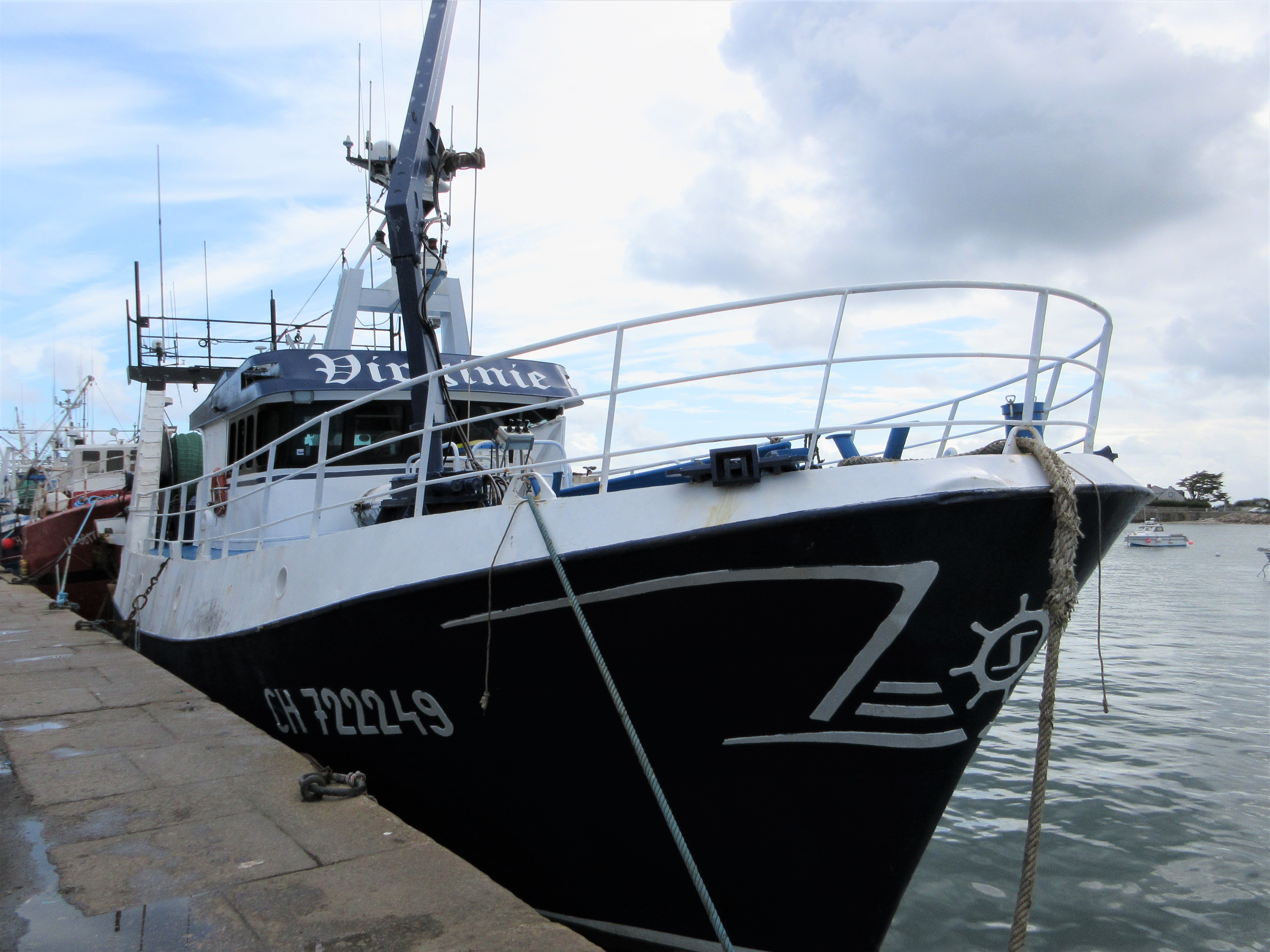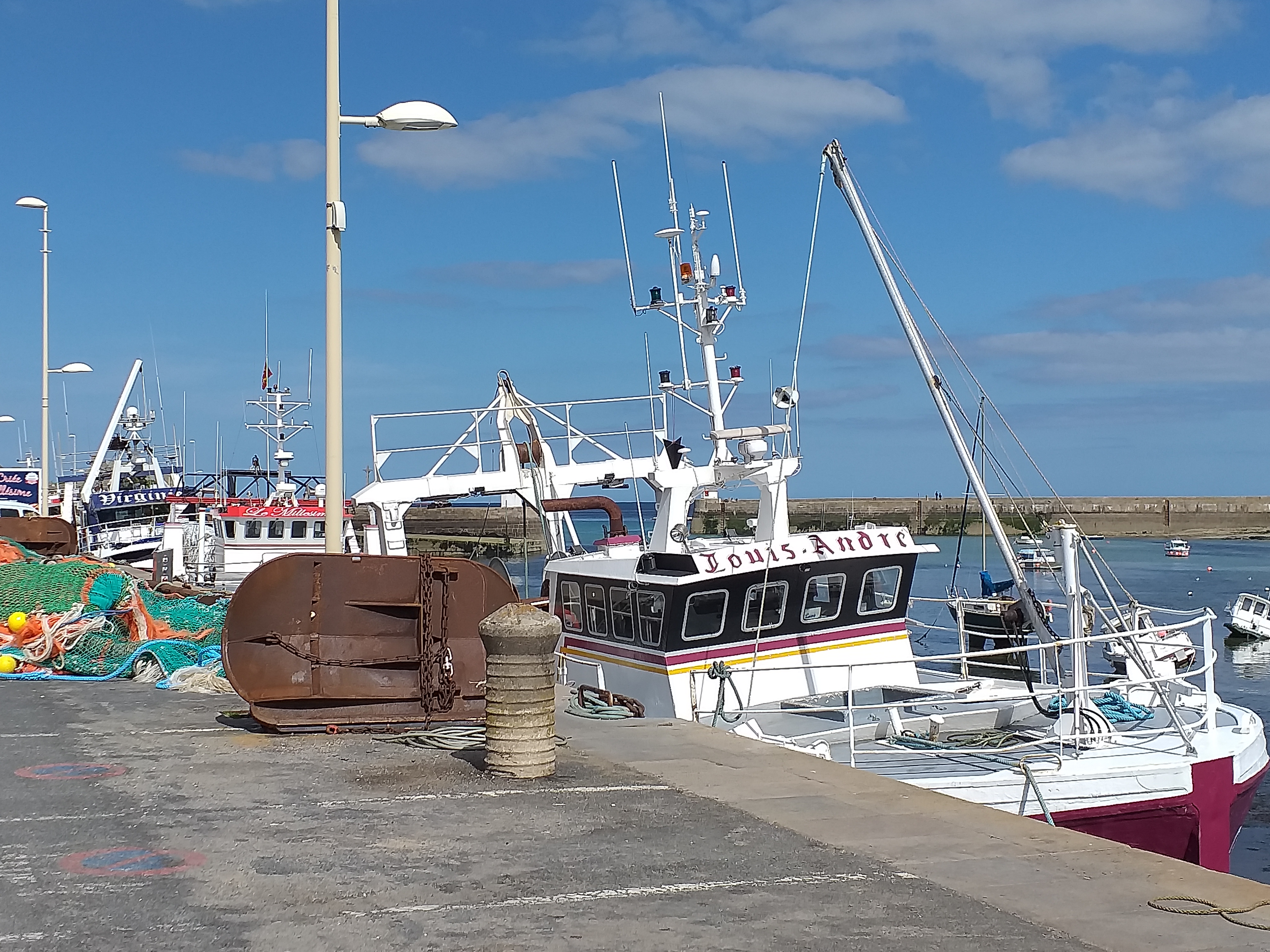 Superbe port à l'heure où les chalutiers rentrent et déchargent leurs coquilles saint jacques.