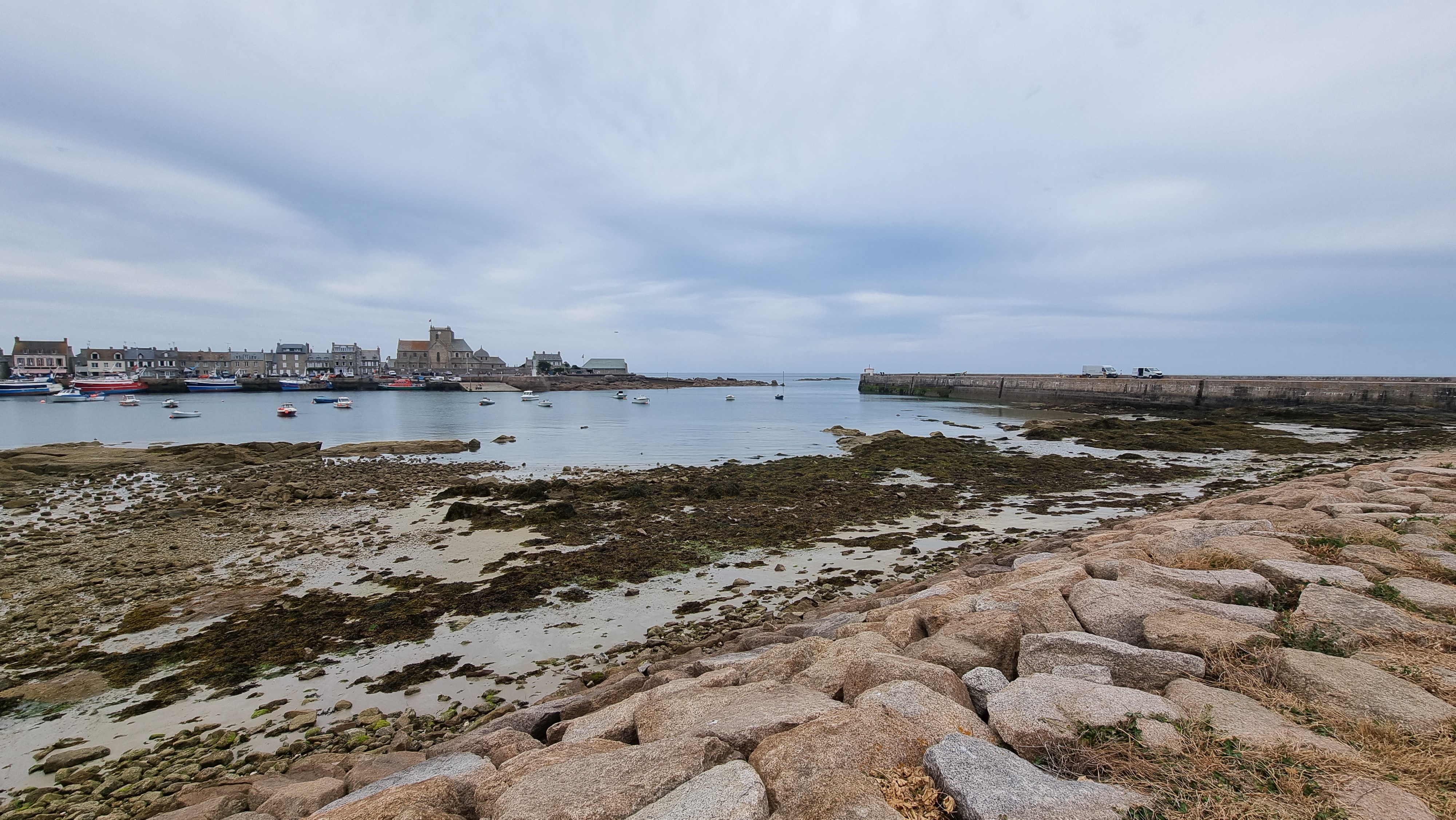 Alors forcément, quand vous avez la chance de passer ici par un soleil magnifique et à marée haute, c'est superbe. La vue du port, la jetée, le large, l'église. L'ambiance par un bon froid sous la pluie à marée basse est légèrement différente ;)