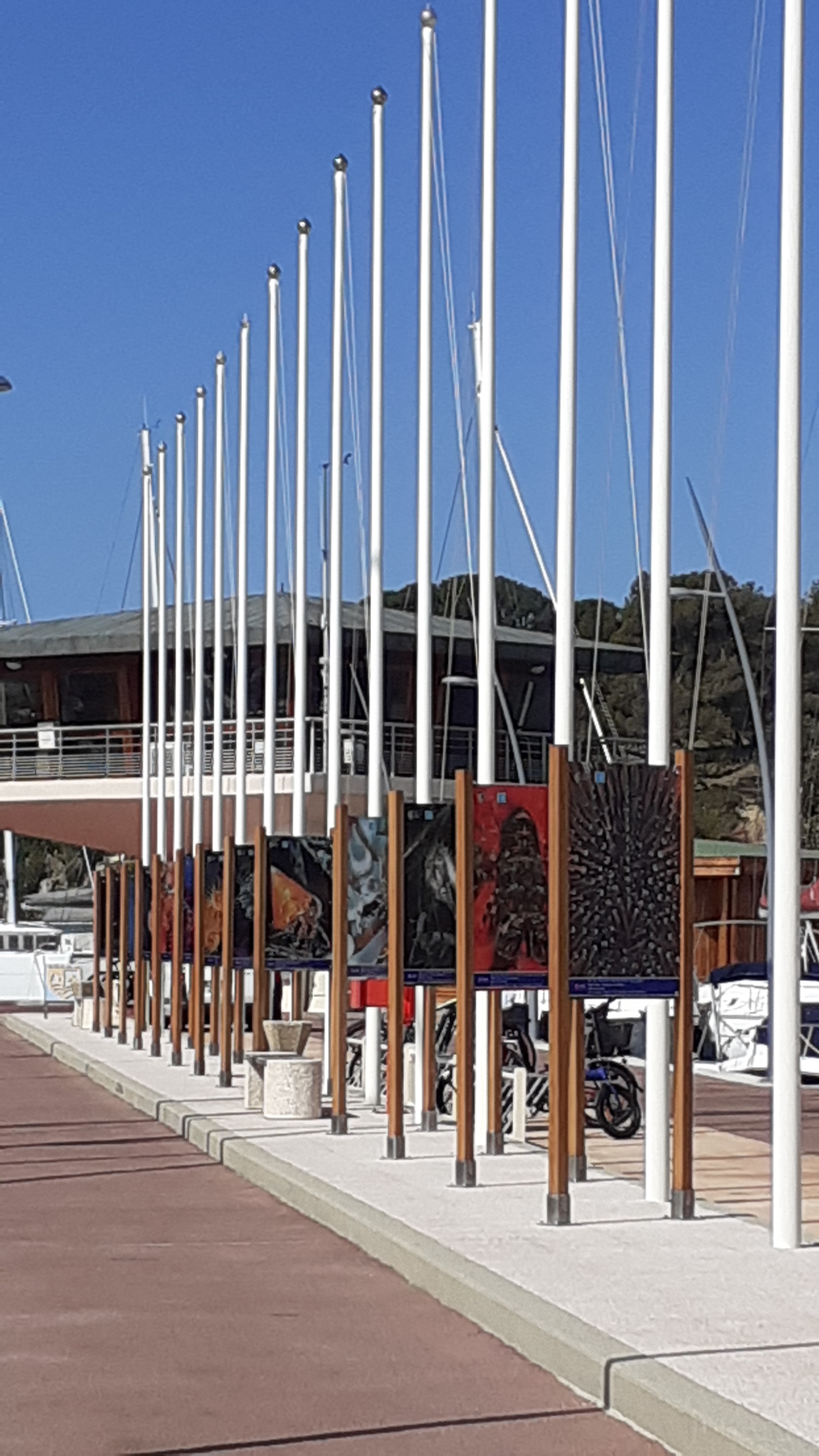 Tres agréable a s y balader, les bateaux bien rangé donnent un air de vacance. Et faute de pouvoir plongé , on peut admirer toutes ces grandes photos de poissons ainsi que les sites internet. Merci a vous