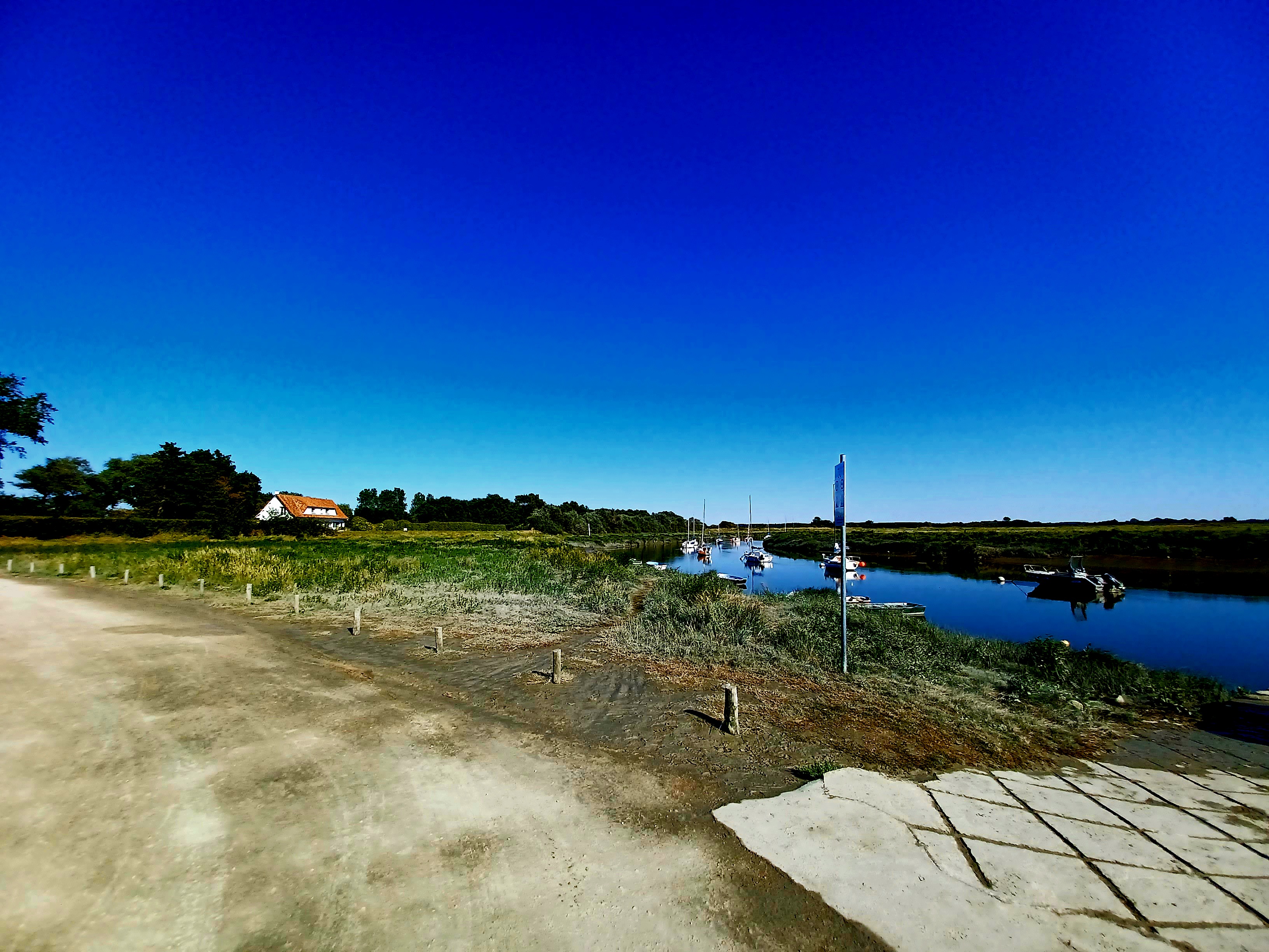 Bonne promenade, mais pas très longue, l'endroit n'est pas immense, soleil et chaleur ont fait baisser le niveau de l'eau, alors le port est réduit, il n'y avait pas beaucoup de bateaux, ou les propriétaires est partis en balade ! Parking juste en face, il y a aussi un restaurant : l'auberge de la Madelon fleurie, mais fermé ?!... pas de chance ! Nous avions soiffff ... !
