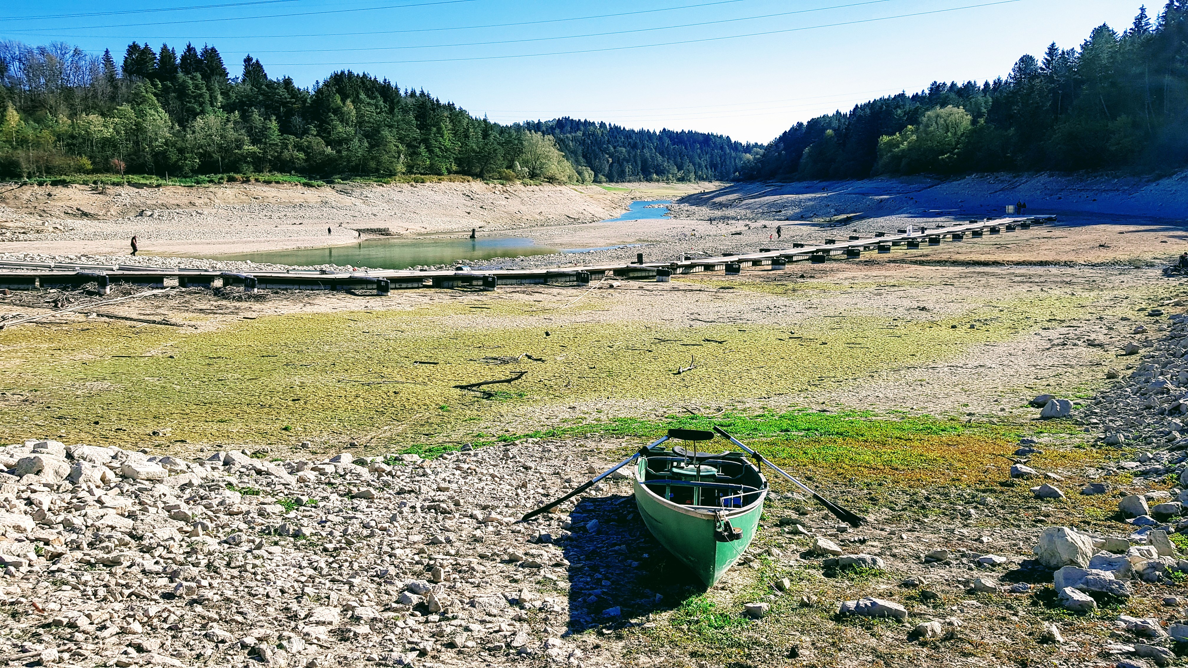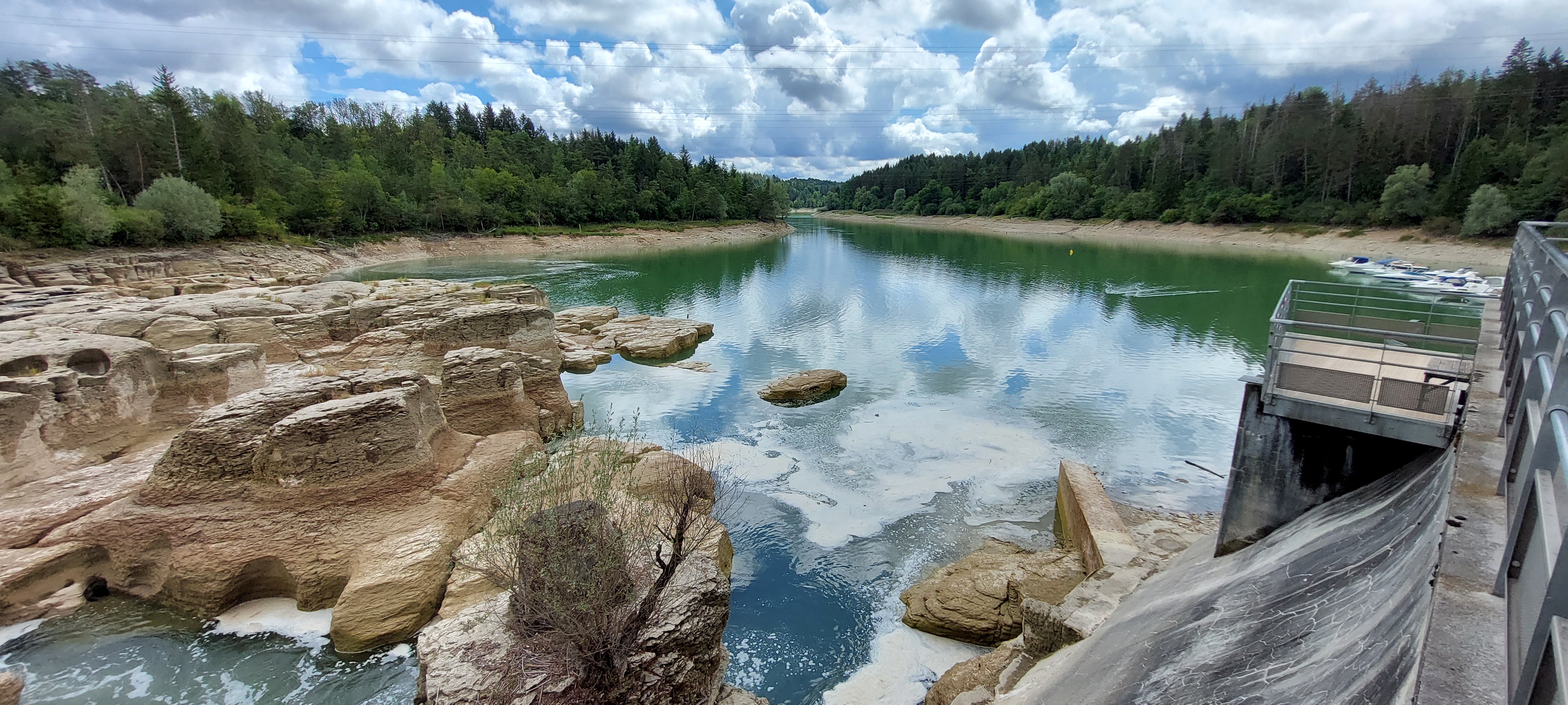 Plus d eau et plus de bateaux pour le moment .La sécheresse est passée par la aussi .Laissons revivre nos lacs avec ses poissons déjà bien mal en point