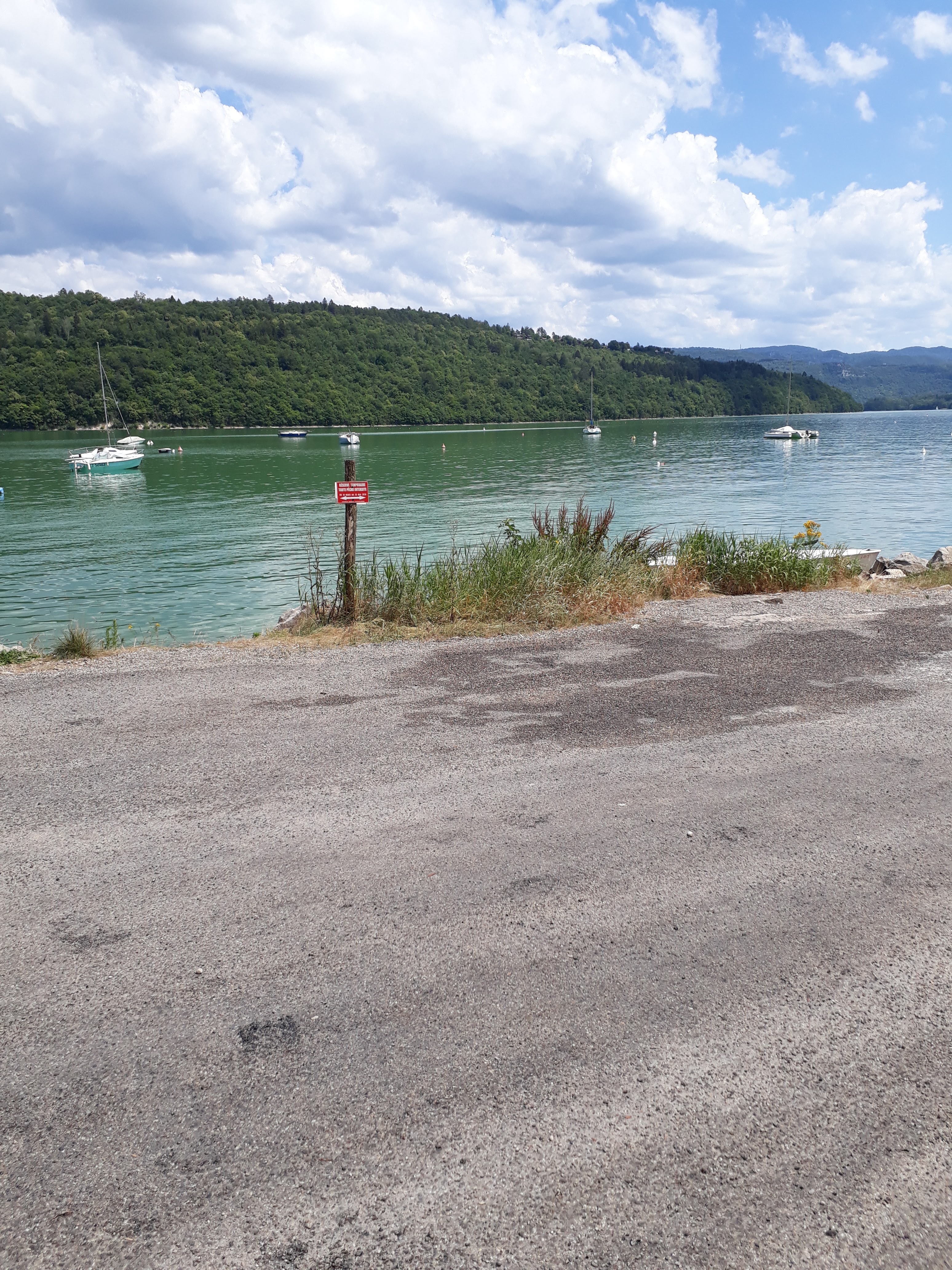 J'aime beaucoup ce lieu qui me rappelle l'emplacement de mon école primaire disparue suite au barrage de Vouglans En ce moment très peu d'eau donc pas de bateaux
