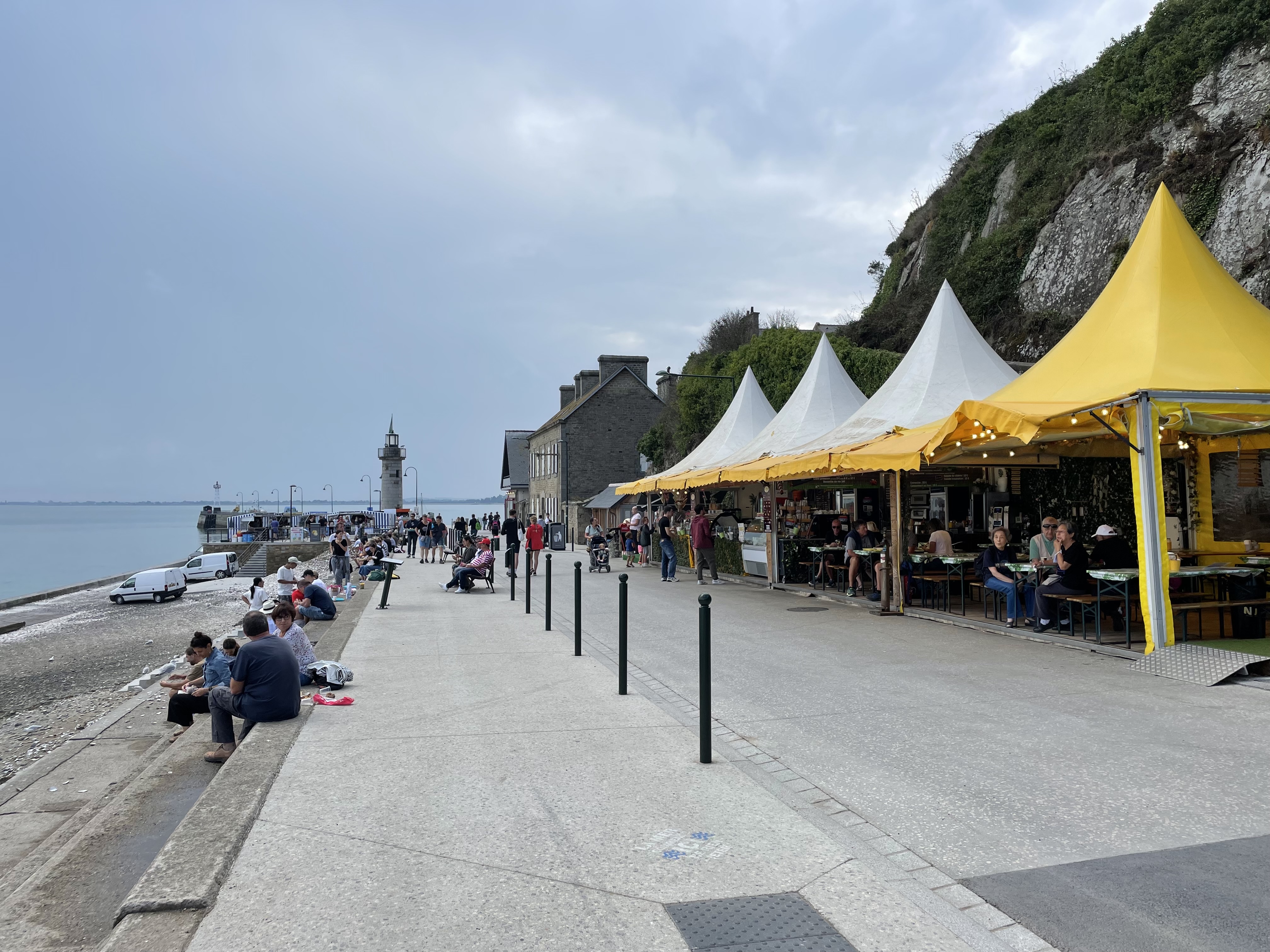 La belle promenade de Cancale est un endroit idéal pour dîner. Les restaurants sont côte à côte et vous pouvez consulter les menus et choisir. Vous pouvez également voir lesquels semblent complets en fonction de leur popularité. Nous nous sommes promenés le soir et avons acheté des souvenirs dans le magasin du coin. Un parking payant est disponible.