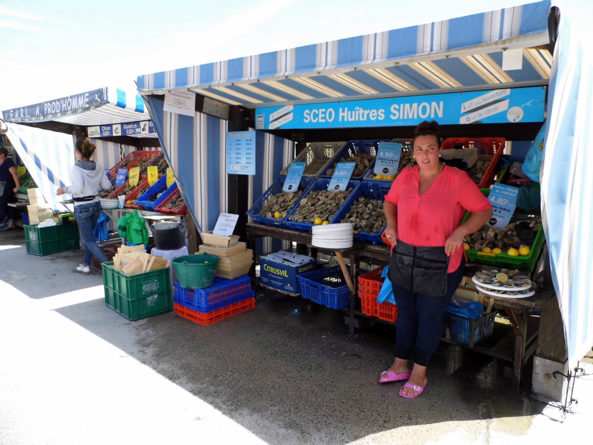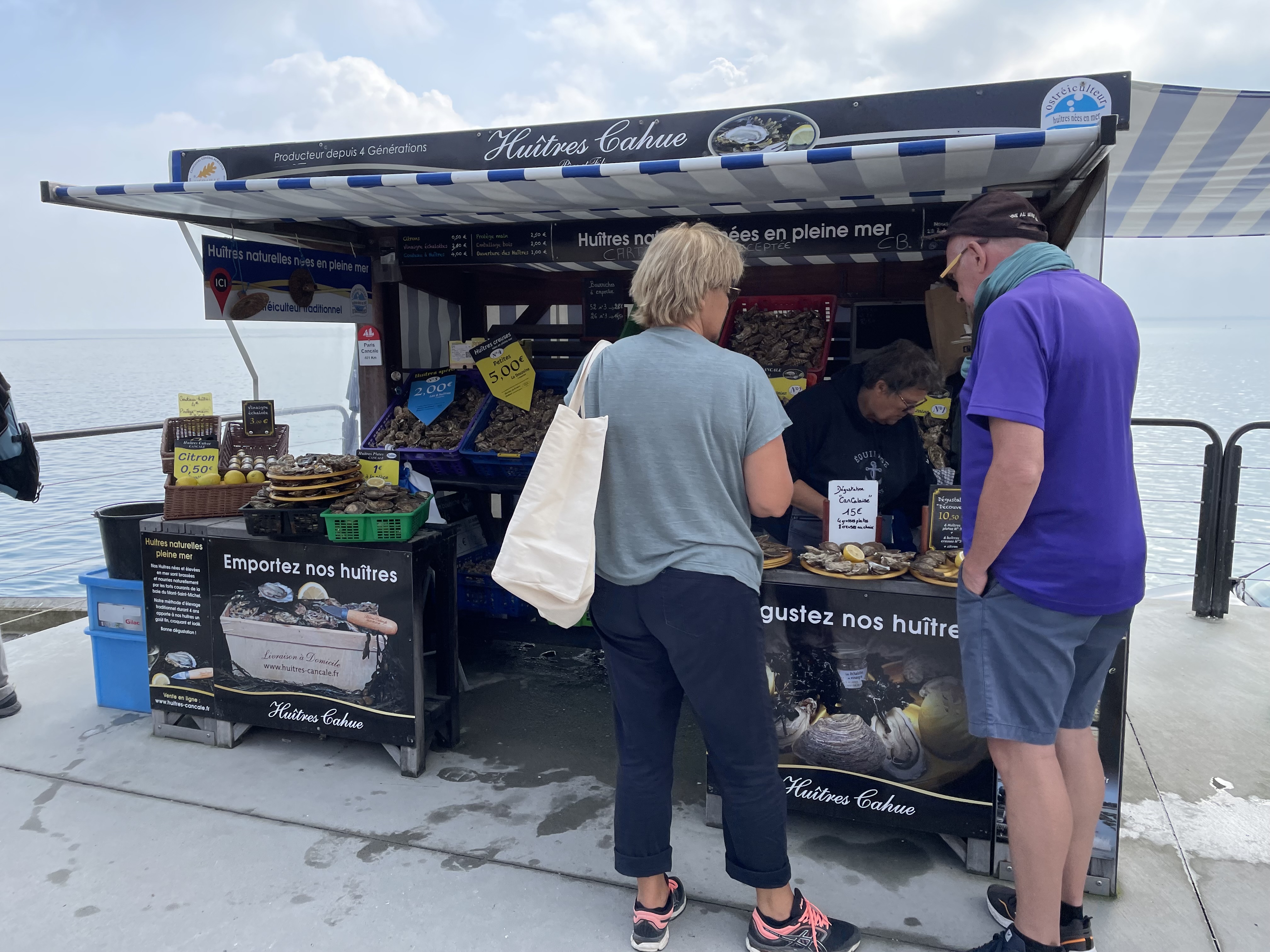Le beau port de Cancale, un splendide endroit pour se promener et déguster d'excellentes huîtres fraîches dans les différents étals. Plats d'huîtres et de crustacés à consommer sur le pouce. Si vous aimez cette cuisine, vous ne pouvez pas manquer d'aller à Cancale !