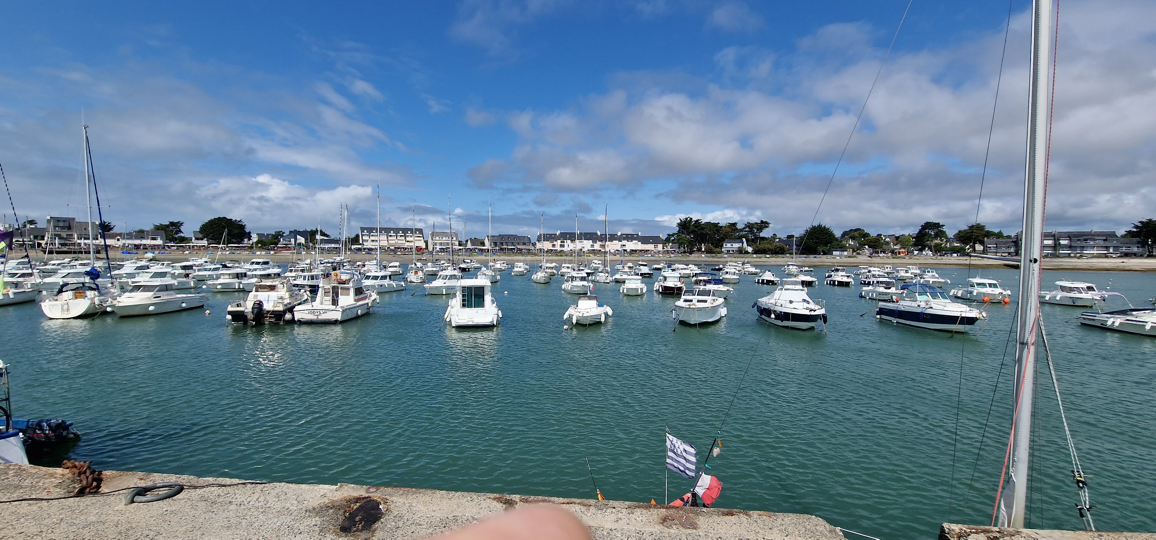 Idéal emplacement et port breton comme nous les aimons . Traditionnel et belles réalisations. Vu entraînement des services de Pompier en mer. ***