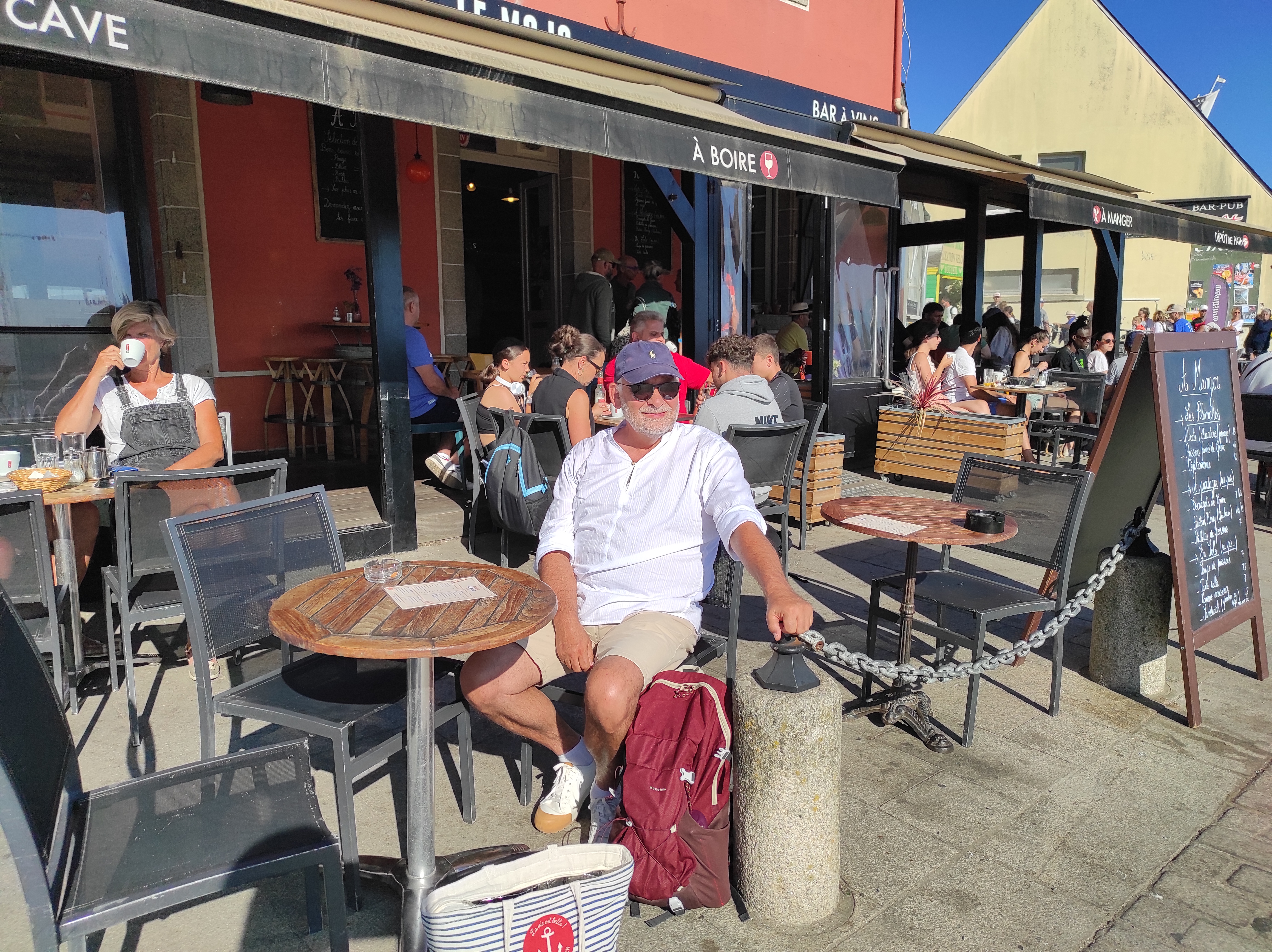 Une porte d'entrée de carte postale pour votre débarquement à Groix. Magnifique et énergie formidable du lieu. Le Mojo est un incontournable à l'arrivée pour se restaurer après la traversée et au retour avant d'embarquer.