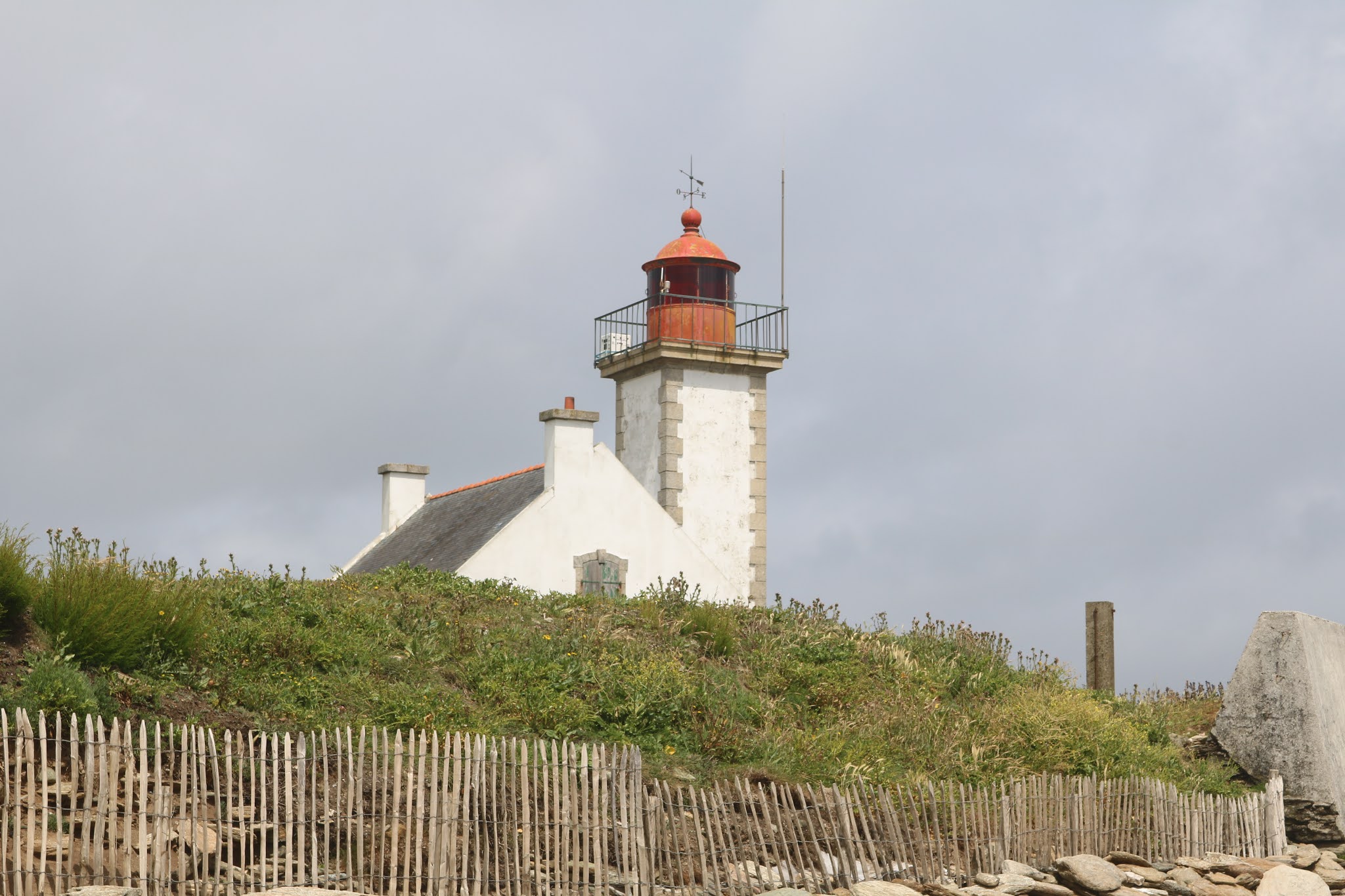 Point d'entrée sur cette île presque sauvage quand les touristes ne sont plus là ! Petit port très agréable. Des lieux de restauration tous aussi sympathiques les uns que les autres. Des loueurs de vélos. On monte l'escalier du Grip, belle vue sur le port. On monte la rue et on arrive au village. Il y a tout ! Une poste. Une pharmacie. Des commerces. Des crêperies. Et puis l'île... comment passer à côté des phares de Pen Men et des Chats, un à chaque bout de l'île, que l'on peut voir ensemble de la pointe de l'Enfer. Paradis du vélo, de plus en plus électrique, et paradis des marcheurs. Le tour de l'île, 25 km. Ça monte, ça descend. Ça tire les mollets !