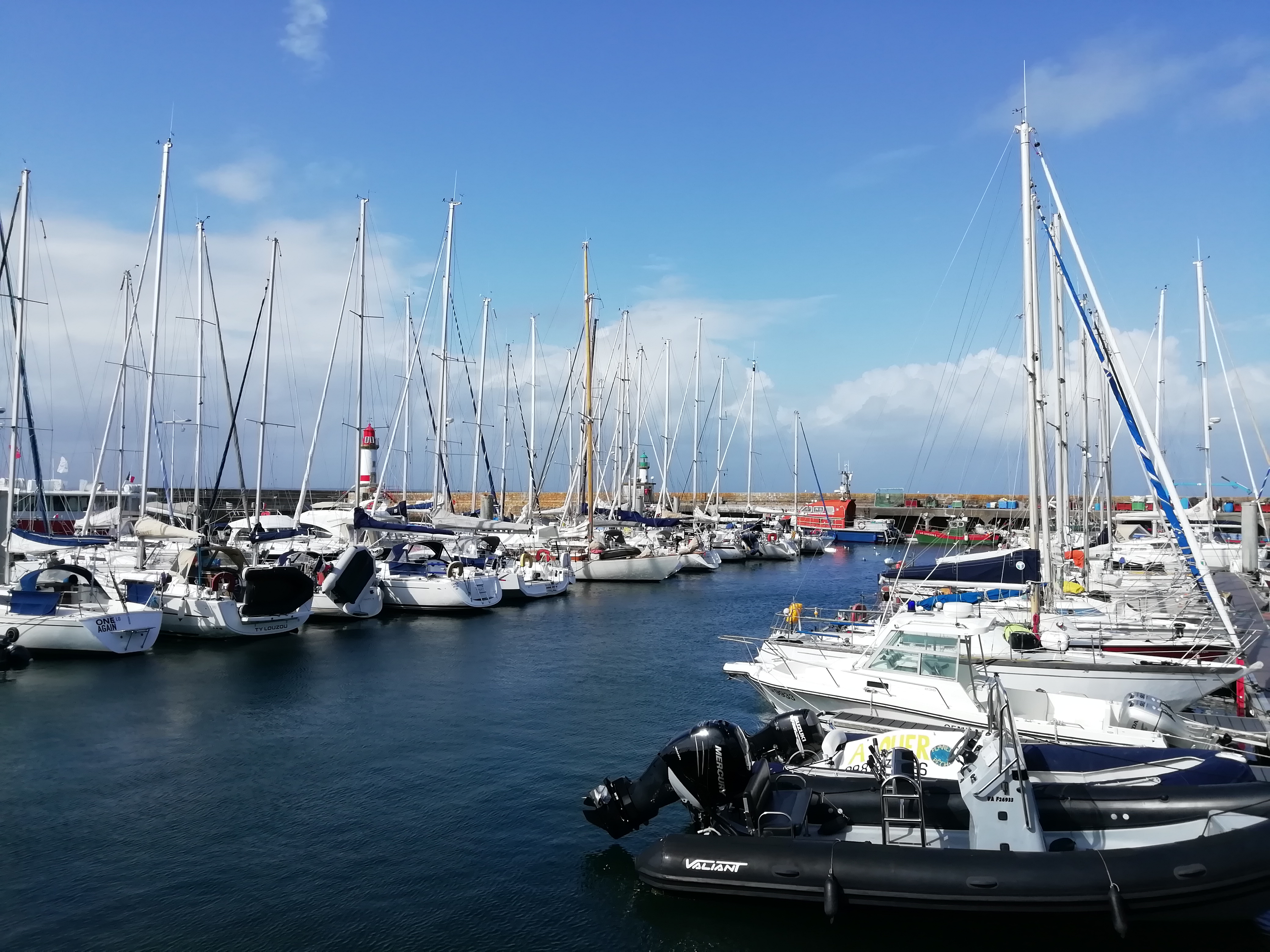 Petit port Breton avec une vue époustouflante sur le phare lorsqu'on arrive en bateau.